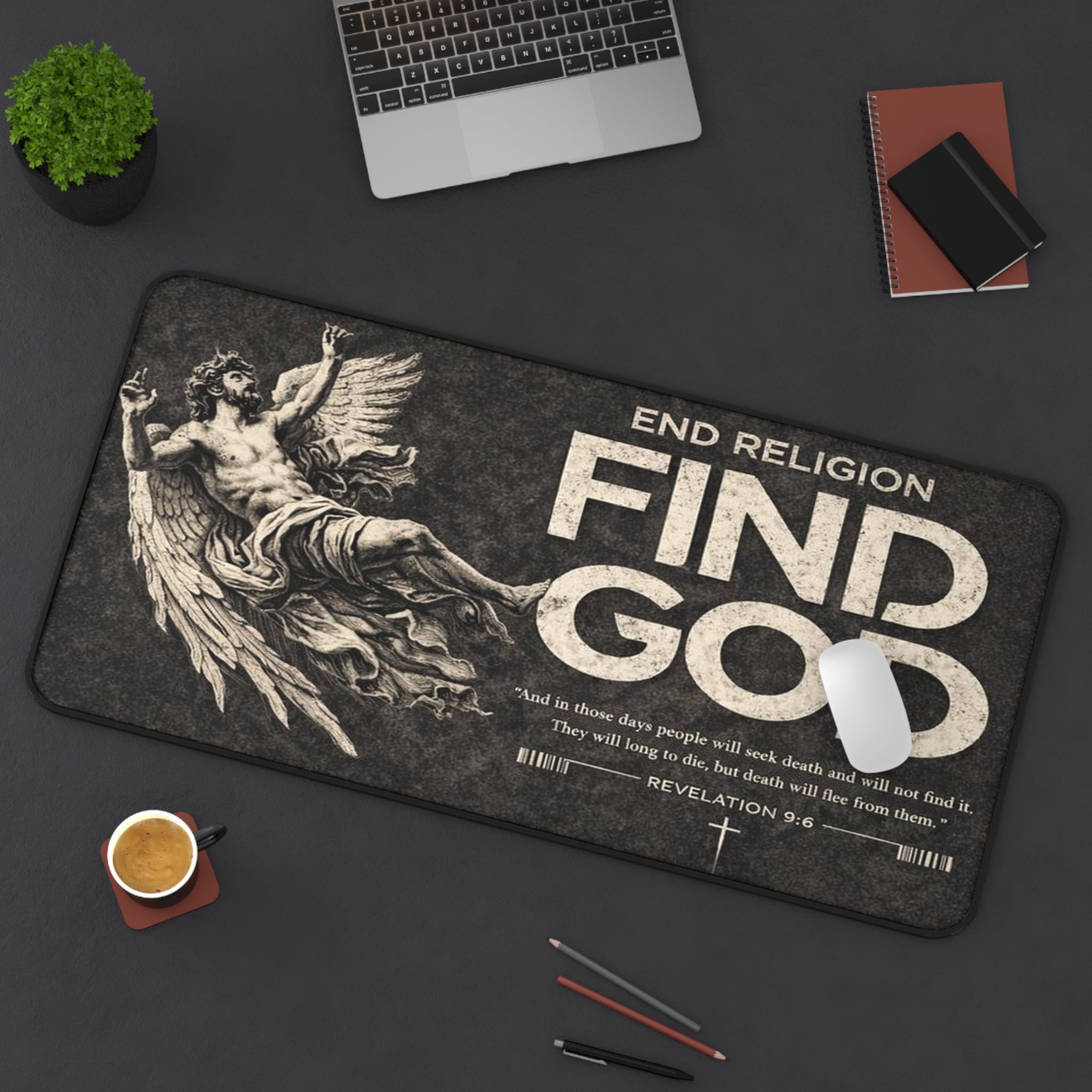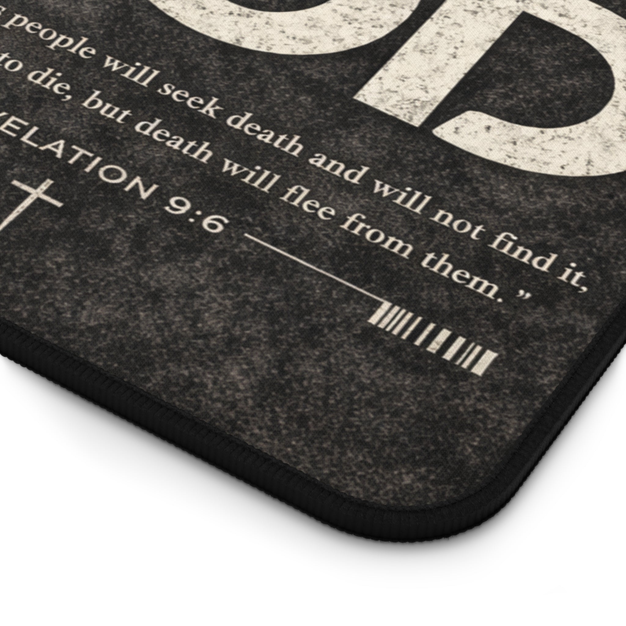 XXL desk mat. Non-slip rubber base. Smooth surface. Water-resistant. Full panoramic graphic.