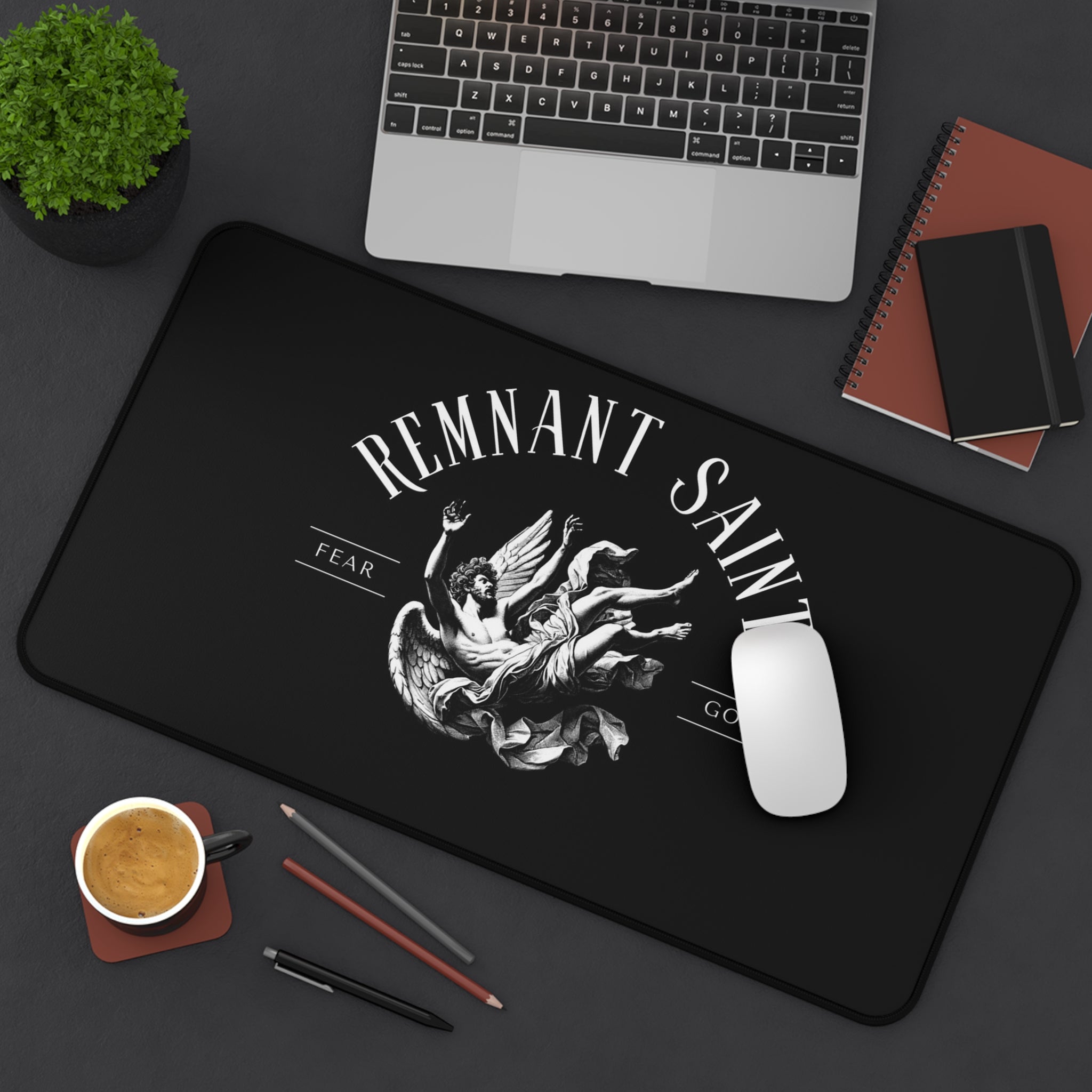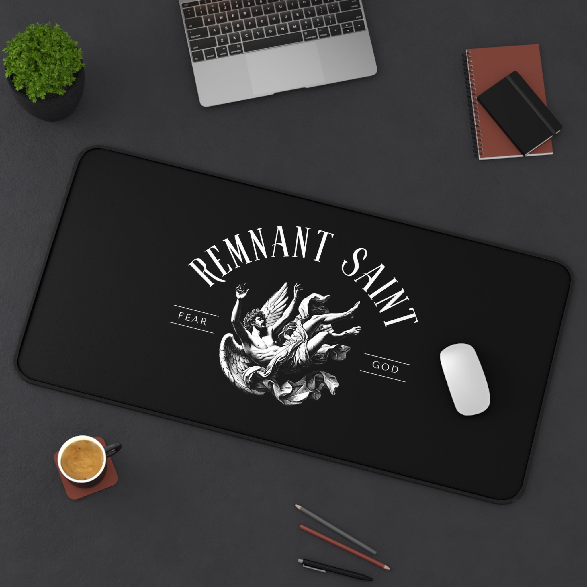 Fear God. That's the posture you bring to the work, the grind, the decisions made at that desk every day. The Remnant Saint desk mat keeps the mission in front of you.