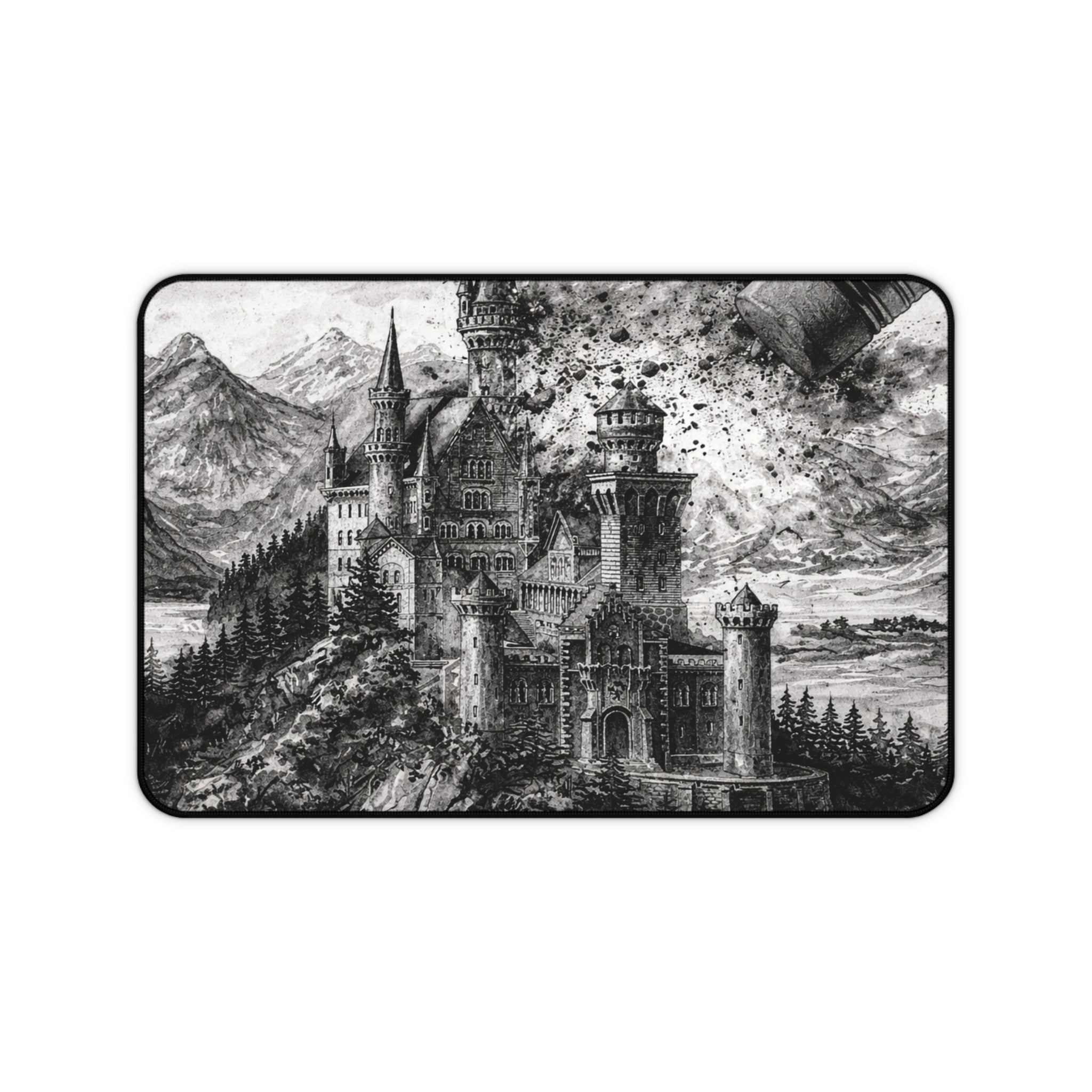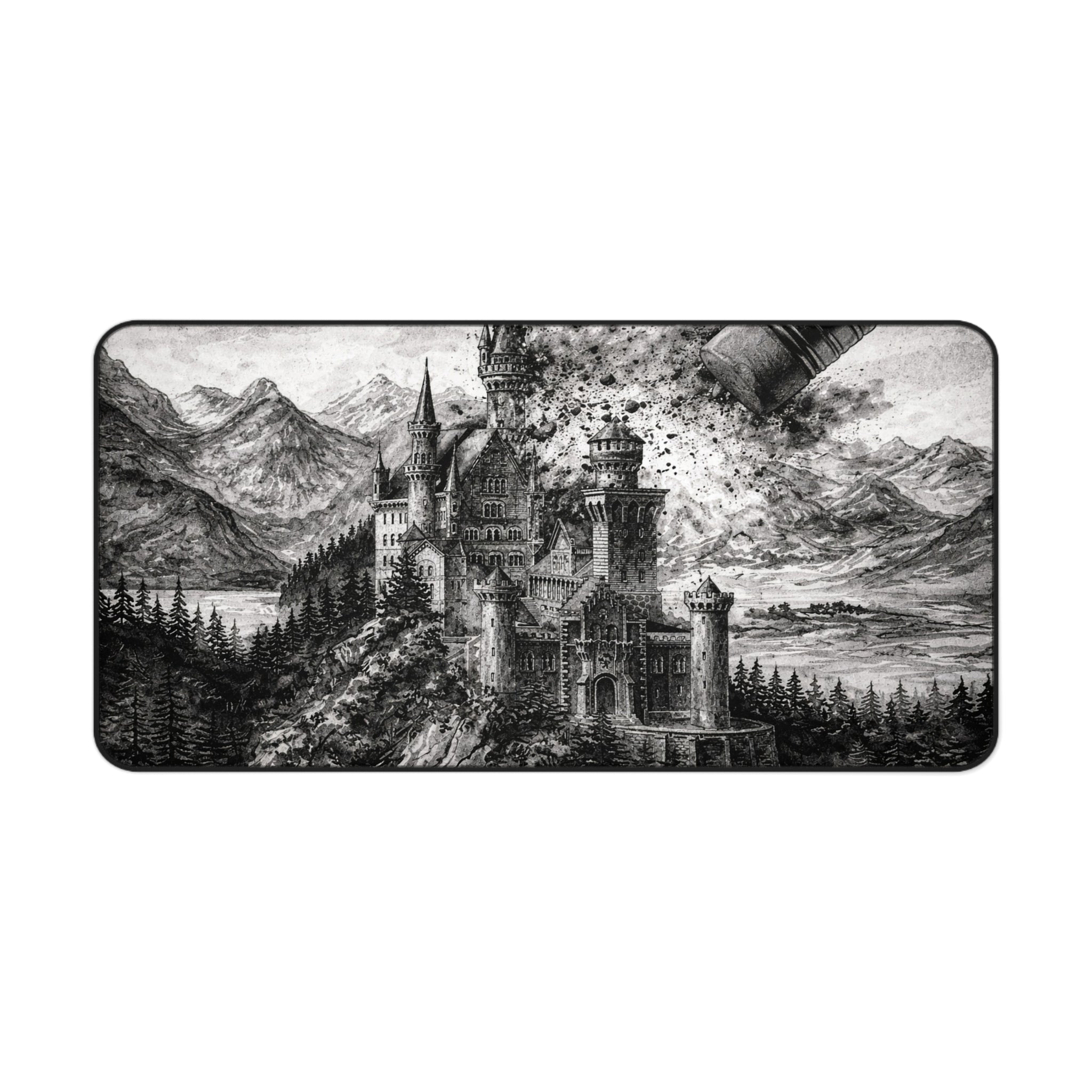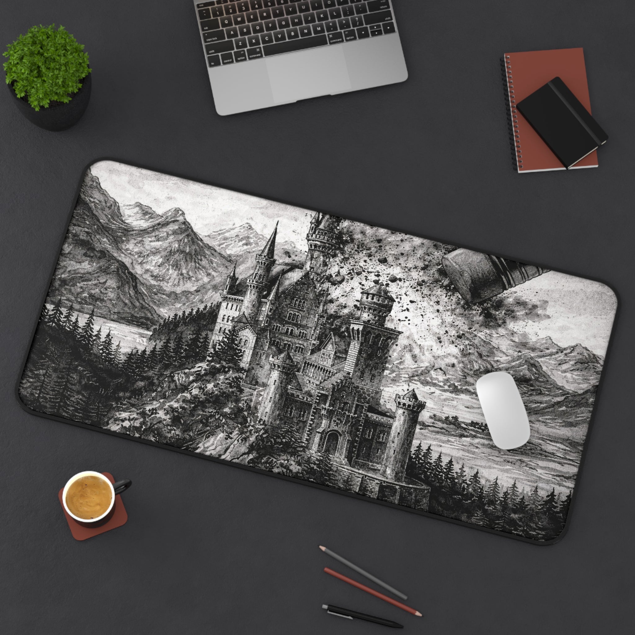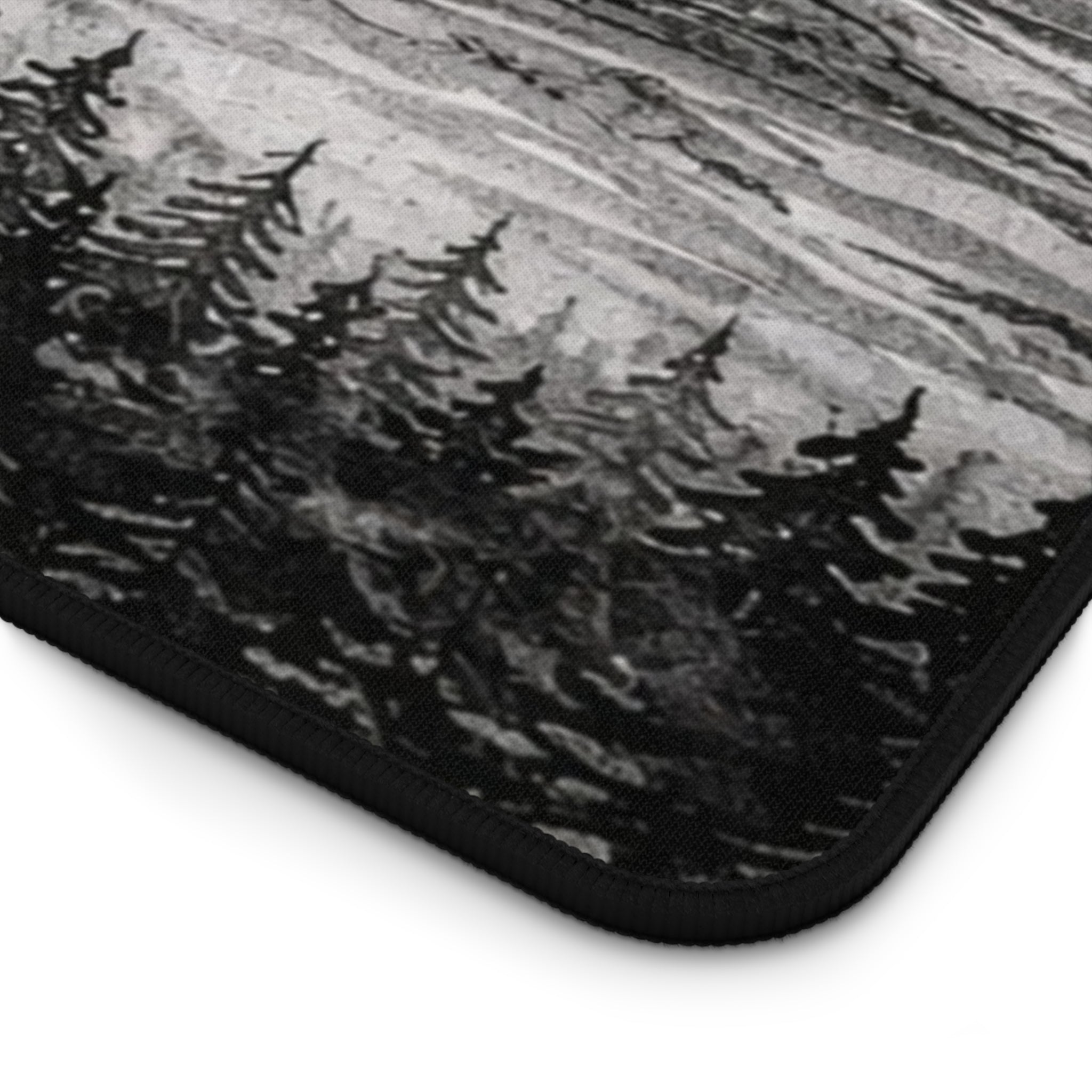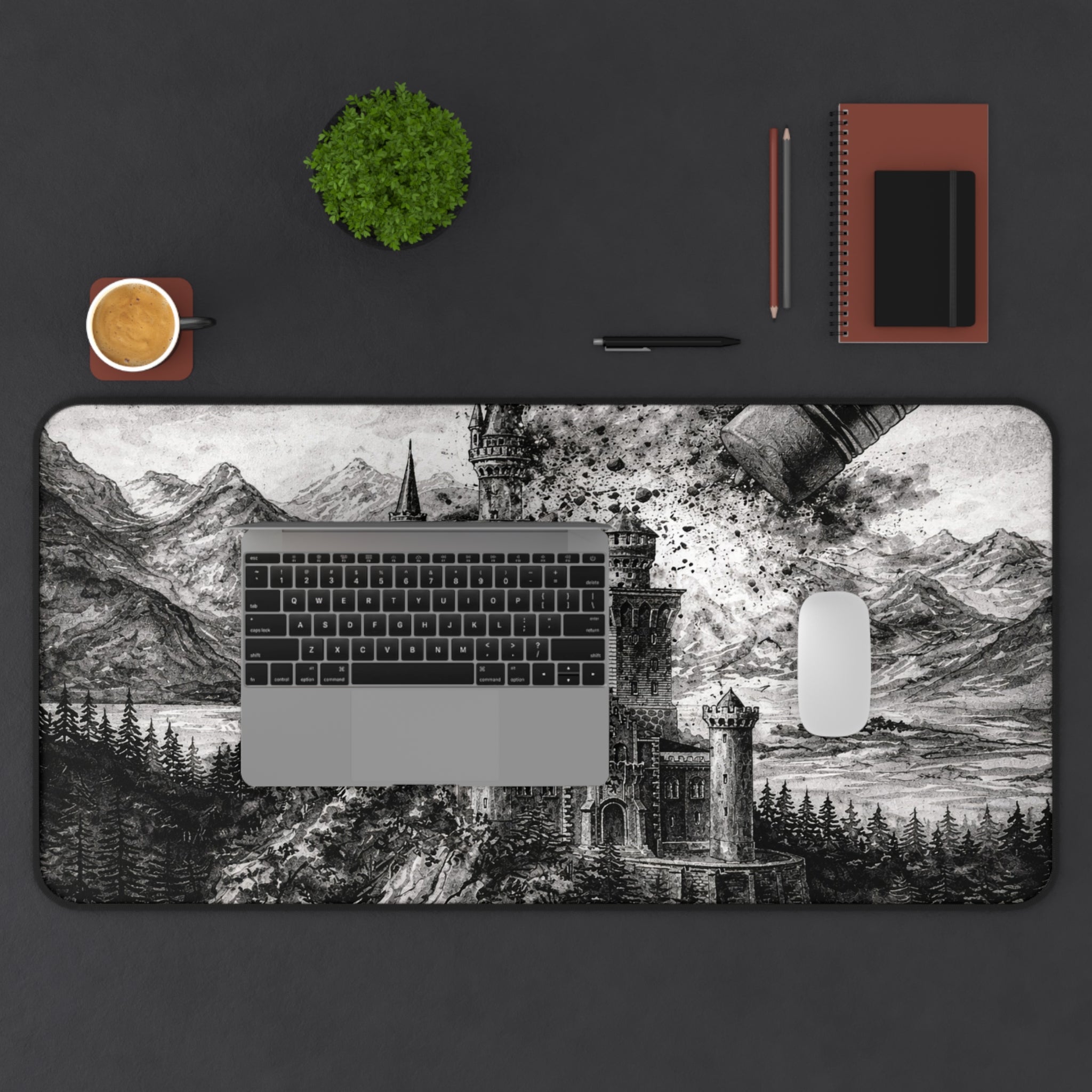 XXL desk mat. Non-slip rubber base. Smooth surface. Water-resistant. Full panoramic graphic.